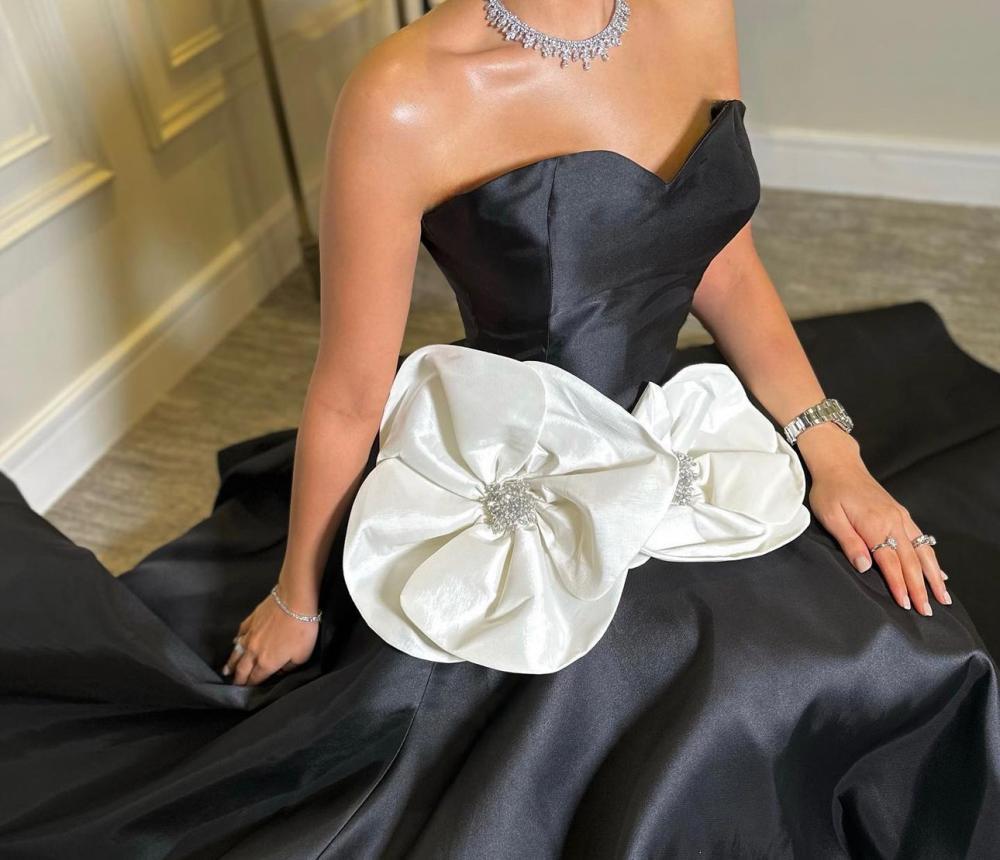 فستان اسود مورد وكحلي