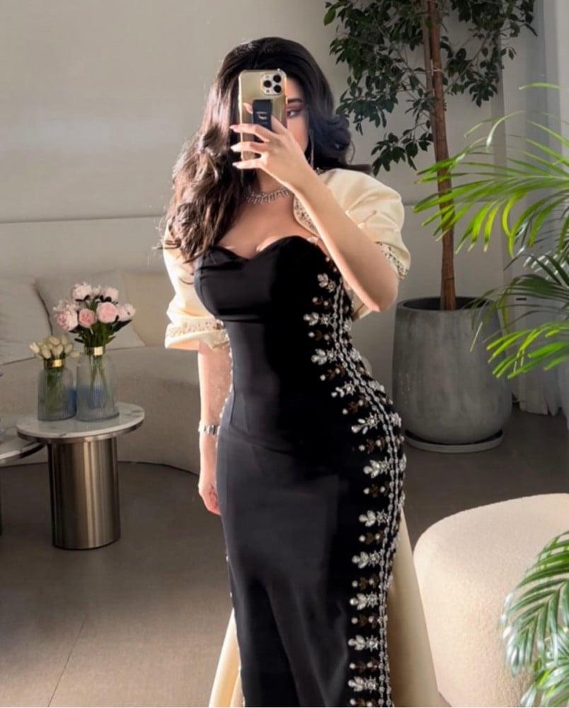 فستان ملكي فخم تطريز من الخصر مع فيونكه قطعتين