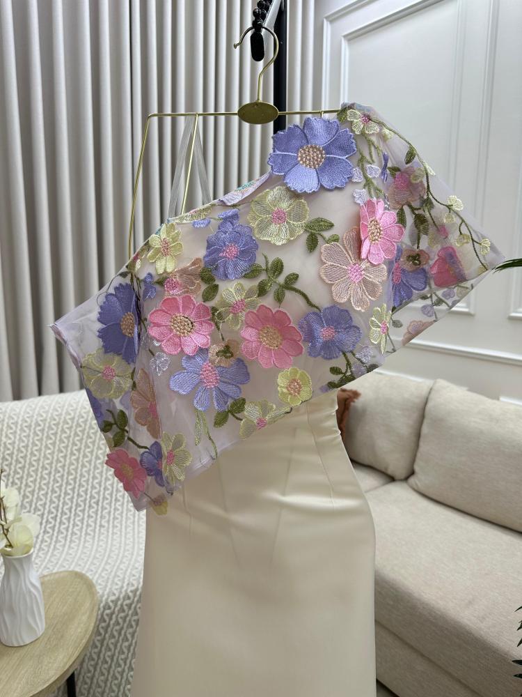 طبقة شفافة مطرزة بالورود لمظهر أنثوي راقٍ
