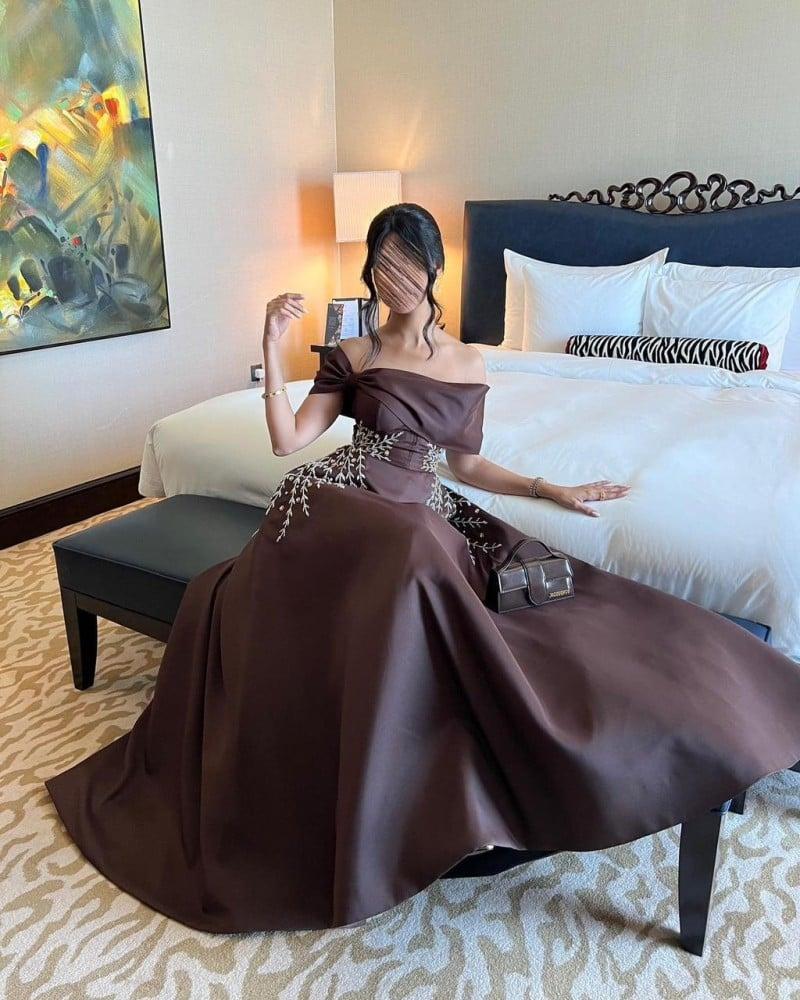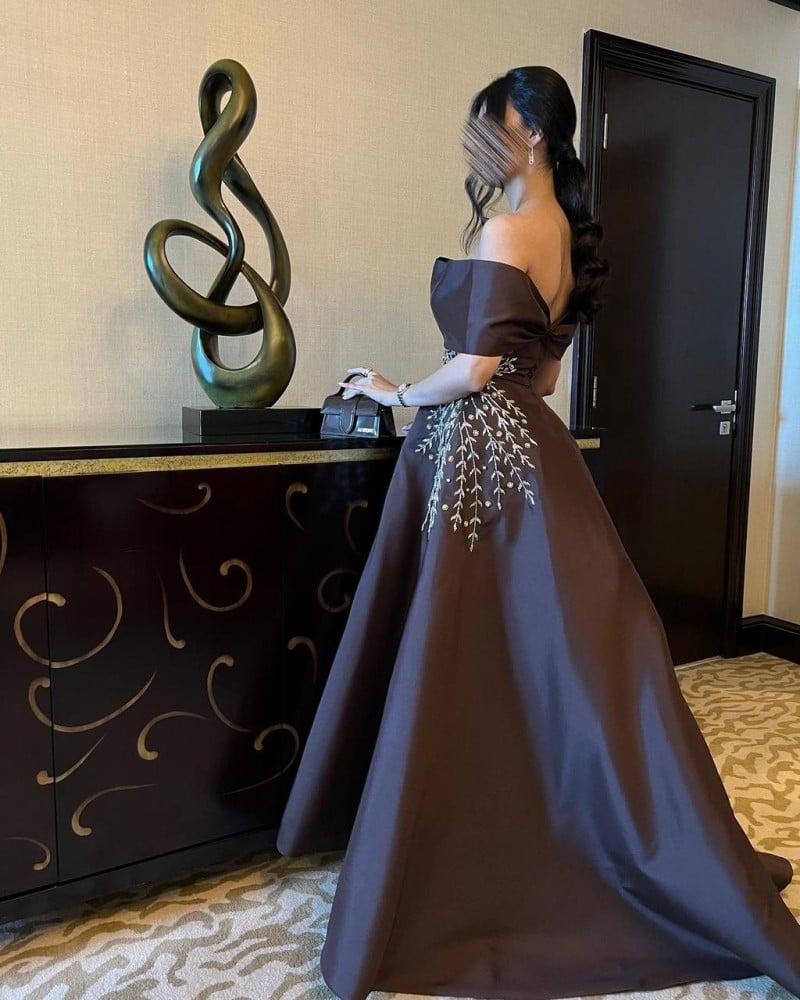 فستان بني مطرز بتطريز فخم